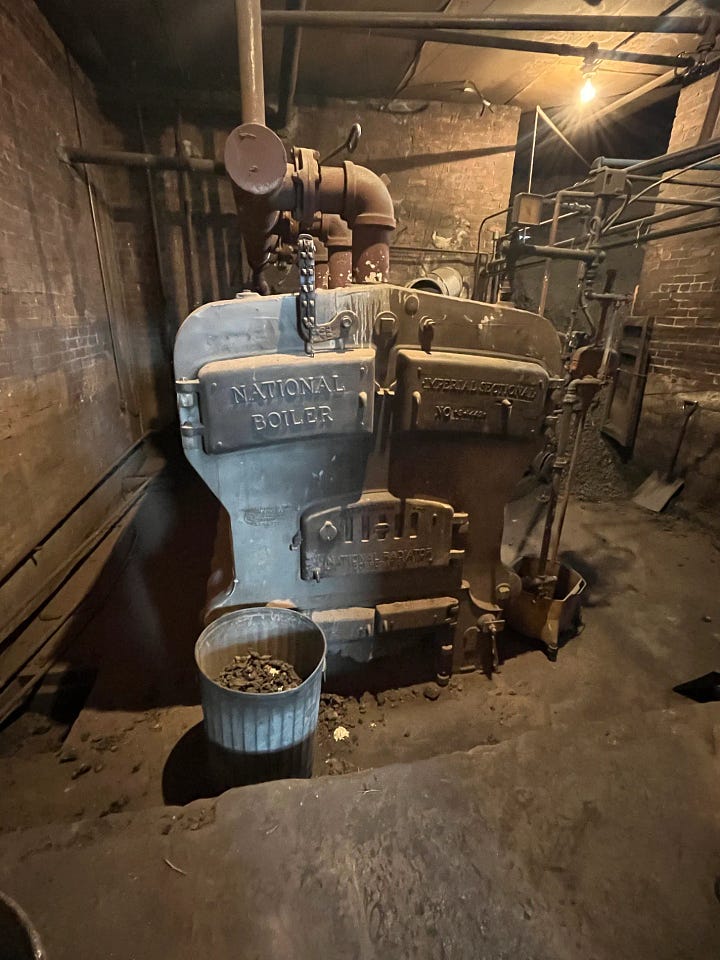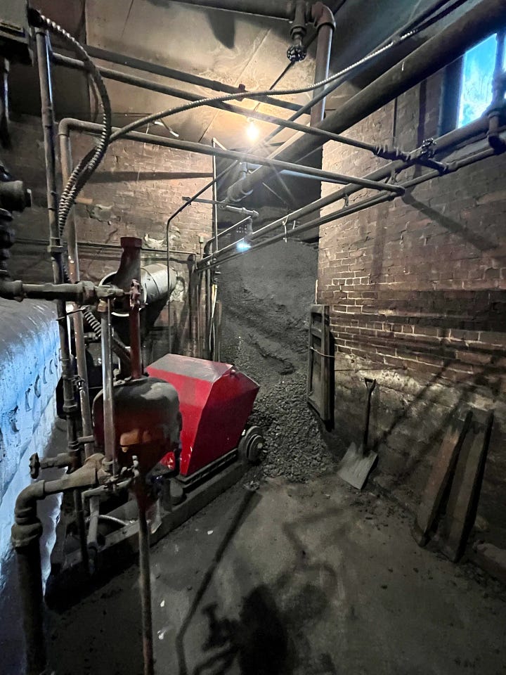 We toured the church. The cathedral ceilings, plastered walls and crown molding; the solid wood pews and wainscoting communicated the history of the place—the craftsmanship and pride. Vibrant and intricate stained glass windows marked every external wall. But the marks of a declining population were everywhere. Portions of the structure essentially abandoned; classrooms being utilized for storage; deferred maintenance. And then there was the enormous coal burning stove in the basement. Now I’ve seen my fair share of coal burning stoves, but this was a big one. Ethan explained to me that in his region power is extraordinarily expensive. As Appalachia was one of the epicenters for powering America’s industrial revolution, I found this ironic. Folk with older homes spend as much as a $1000 a month to heat their houses. And as that price point is simply out of reach for many, propane heaters designed for industrial buildings have become the norm. As a result, so have house fires. Ethan reported that 3-4 houses in his county burn down every year largely due to the common man utilizing uncommon practices to keep his children warm. Main Street UMC? It burns two tons of coal every couple of weeks.
