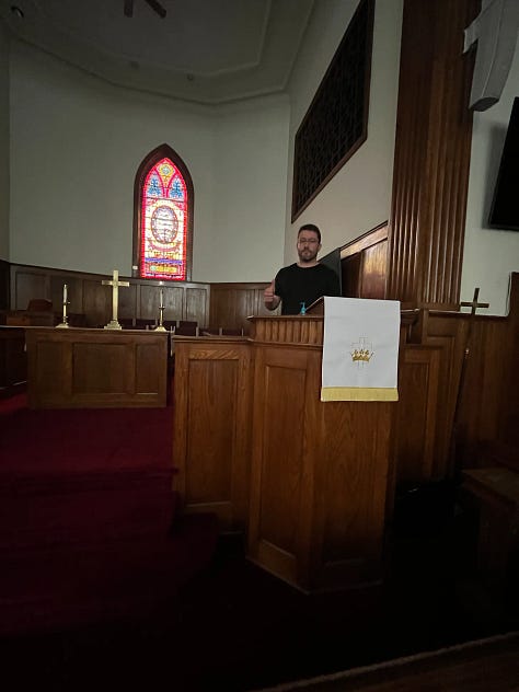 From Tazewell, we headed over to Bishop. On the drive I asked Ethan about the role of the local church in Tazewell and surrounding communities. He spoke with passion of how the local church provides one of the few centers for social cohesion in the region. There are almost no public spaces—the pubs, parks, libraries, playgrounds, and diners one would expect in a typical town can’t seem to stay open. The local library? Closed for two years for structural repairs. So most folk hang out in either private spaces … or churches. But actual church attendance? Well, many congregations are down to less than a dozen people.