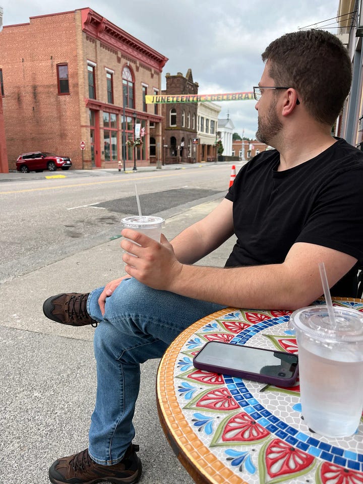 Morning came early. Ethan and I headed “downtown” to grab a coffee at The Well--a cute little coffee shop on Main Street. Settling down outside, it eventually dawned on me that besides Ethan and I, the sidewalks were empty. At nine in the morning. On a Thursday. The Mayberry RFD storefronts lining the street made it obvious that this was once a bustling working class town, but ours was the only car parked outside of what I quickly realized was the only coffee shop in town.